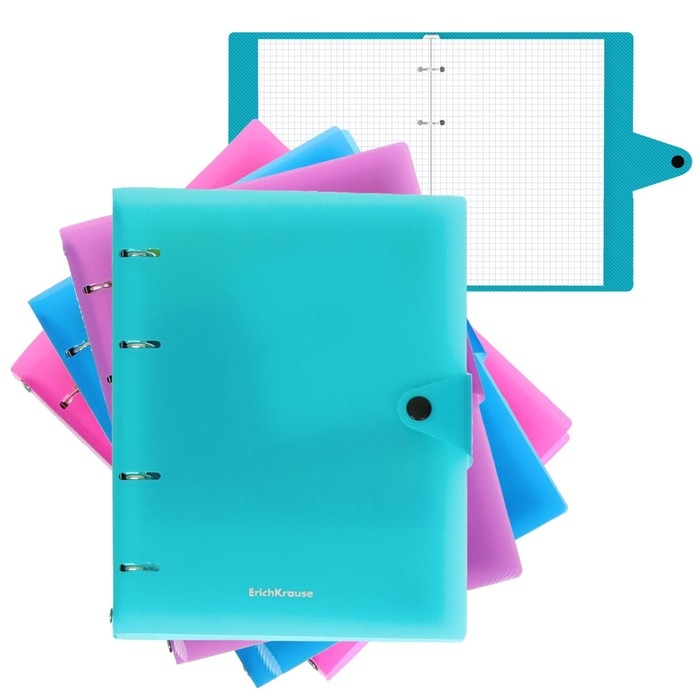 Тетрадь А4 на кольцах, 80 листов в клетку, ErichKrause Accent, пластиковая обложка, на кнопке, блок офсет 100% белизна, МИКС