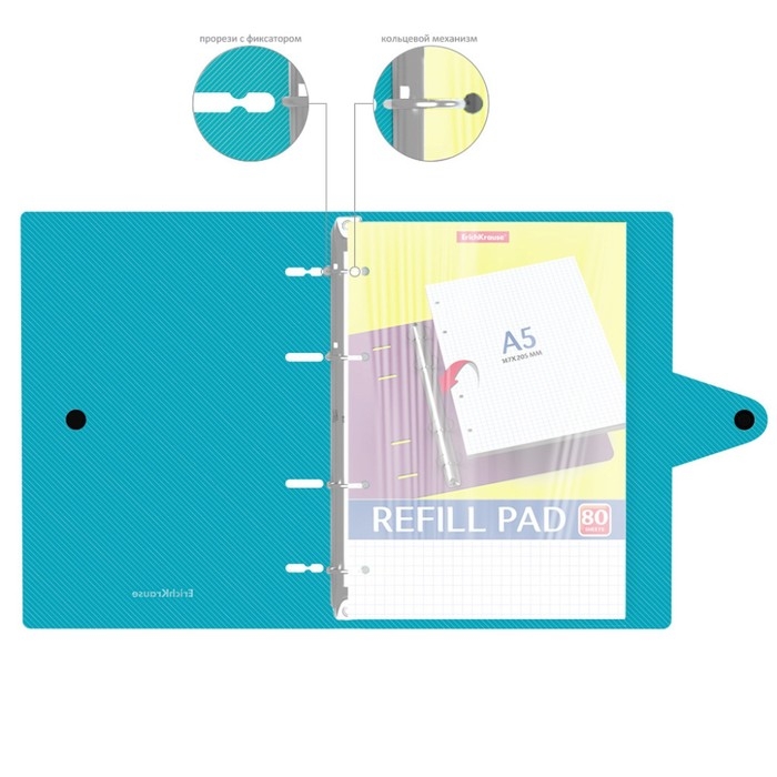 Сменный блок для тетради А4, на кольцах, 80 листов в клетку, Erich Krause