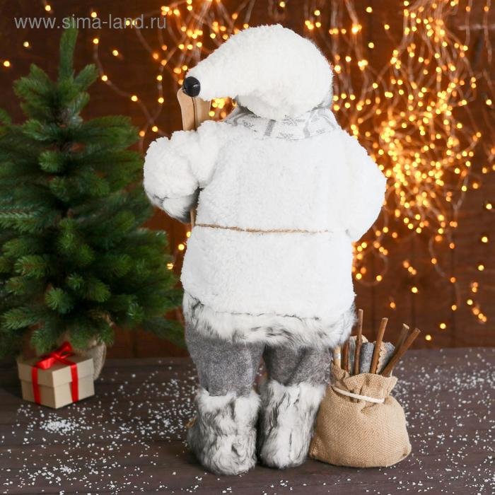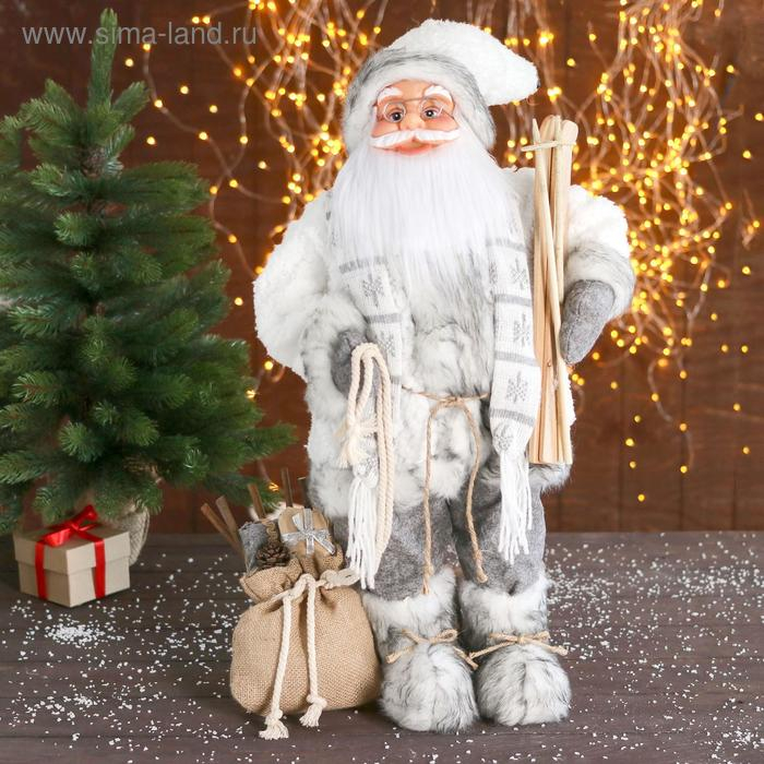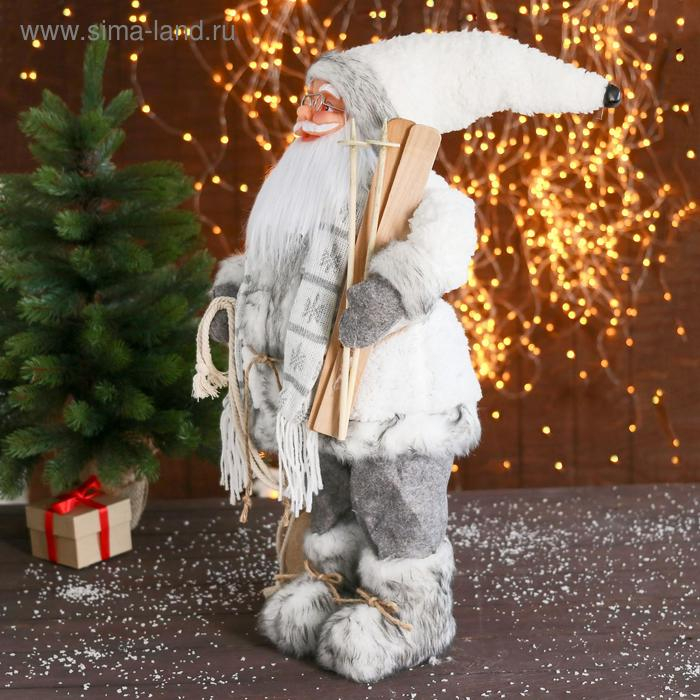 Дед Мороз "В белой шубке с лыжами" 60 см