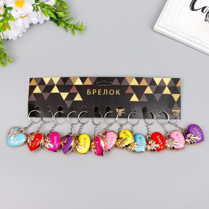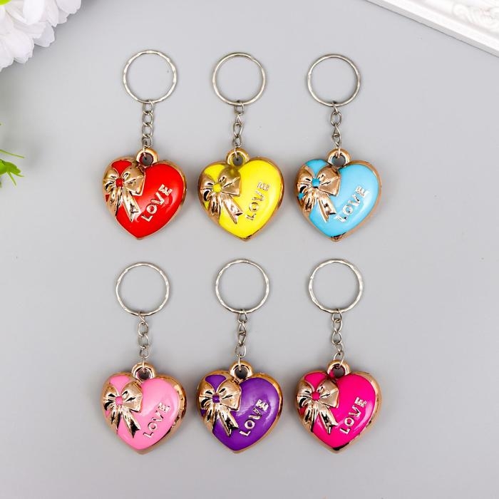 Брелок пластик под металл "Сердечко с бантом" золото МИКС 3,7х3,7х1,2 см