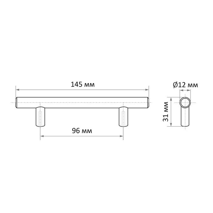 Ручка-рейлинг ТУНДРА HARLOW, пластик, d=12 мм, м/о 96 мм, цвет матовый хром