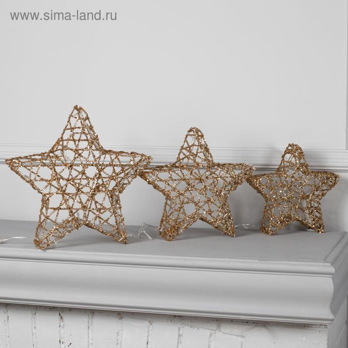 Светодиодная фигура «Звёзды золотистые» 20, 25, 30 см, металл, 220 В, свечение тёплое белое