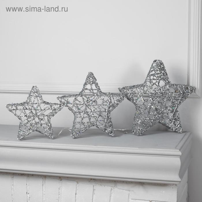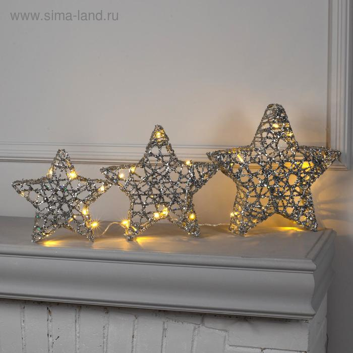Светодиодная фигура «Звёзды серебристые» 20, 25, 30 см, металл, 220 В, свечение тёплое белое