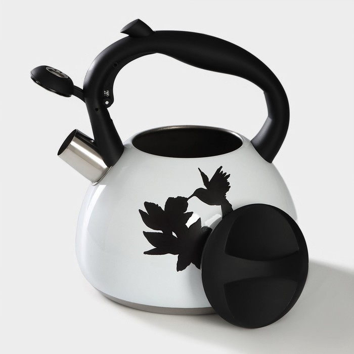 Чайник со свистком из нержавеющей стали Доляна «Чёрная ночь», 2 л, индукция, цвет хромированный