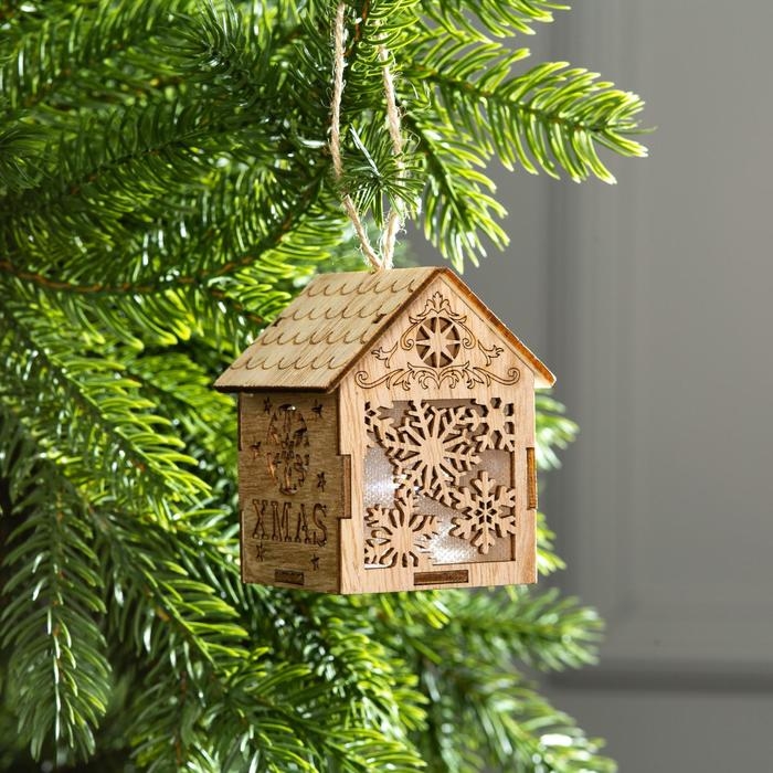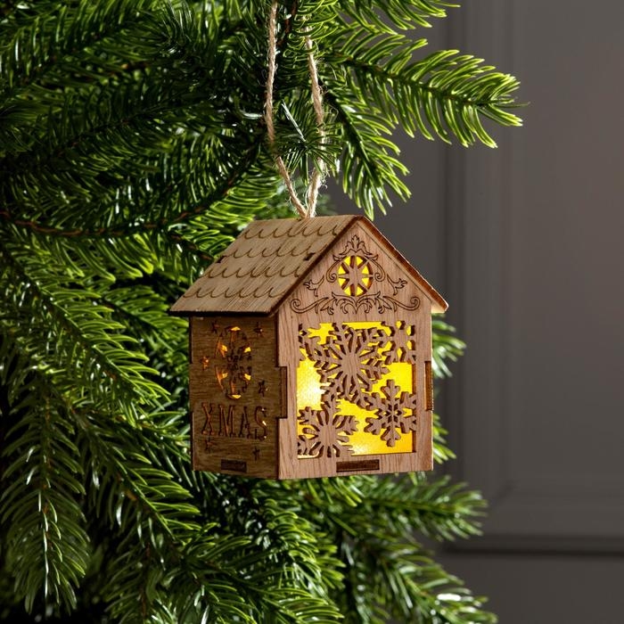 Ёлочная игрушка «Домик со снежинками», от батареек, свечение тёплое белое