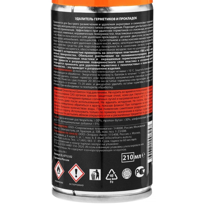 Удалитель герметиков и прокладок Элтранс, 210 мл, аэрозоль EL-0712.02