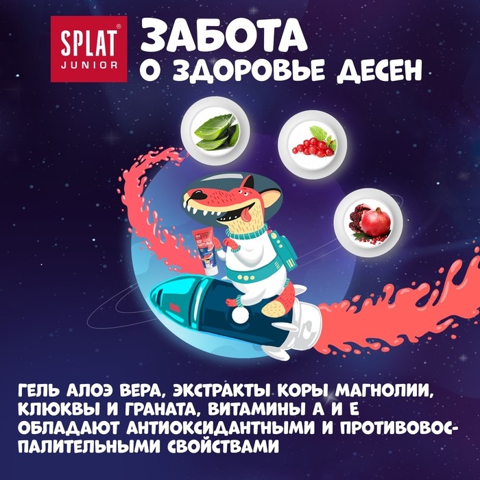 Детская зубная паста SPLAT Junior с ярким мандариновым вкусом* и космическим дизайном порадуют юных исследователей!