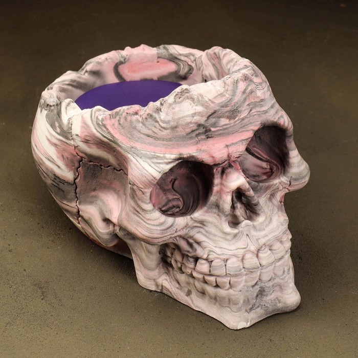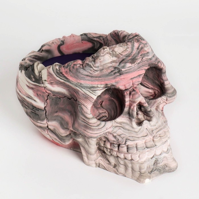 Свеча фигурная ароматическая в бетоне "Череп", 14х11 см, фиолетовый, черника
