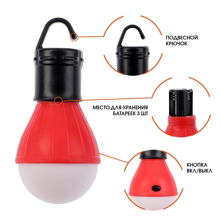 Фонарь кемпинговый, 60 Лм, 3 режима, 3 ААА, 11 х 5 см, красный