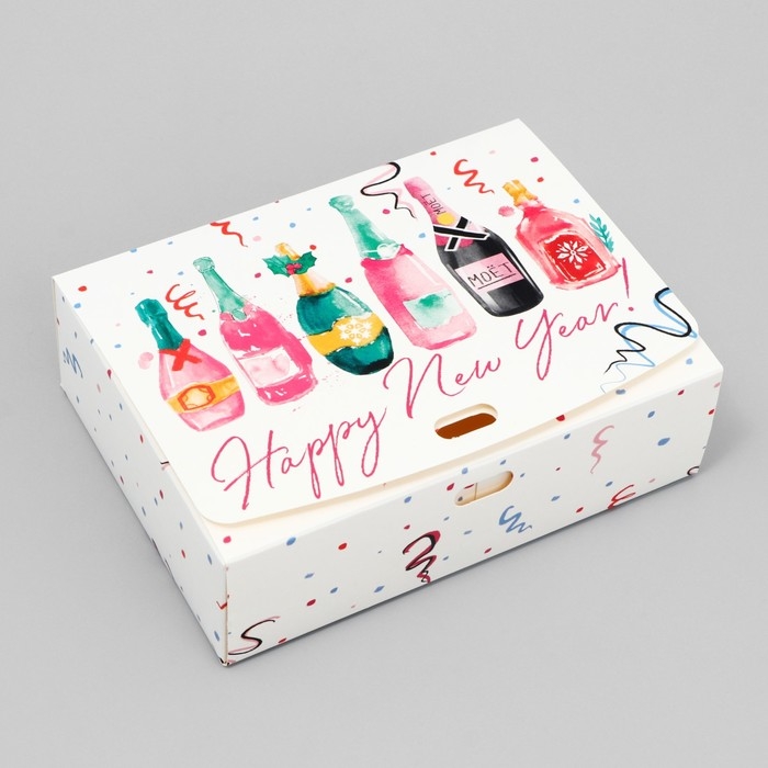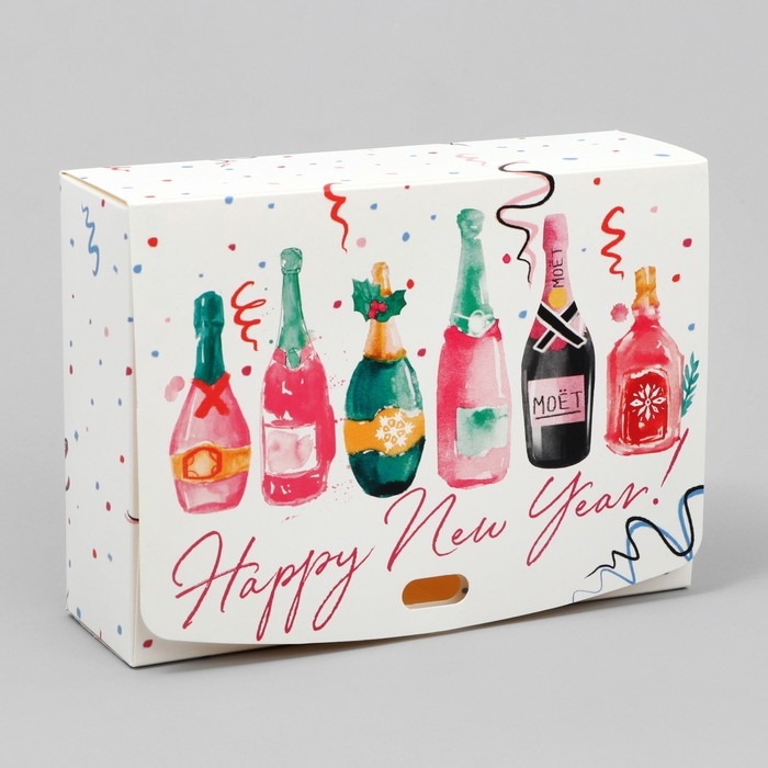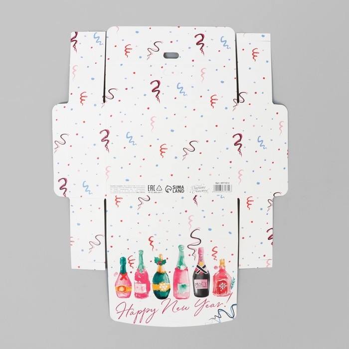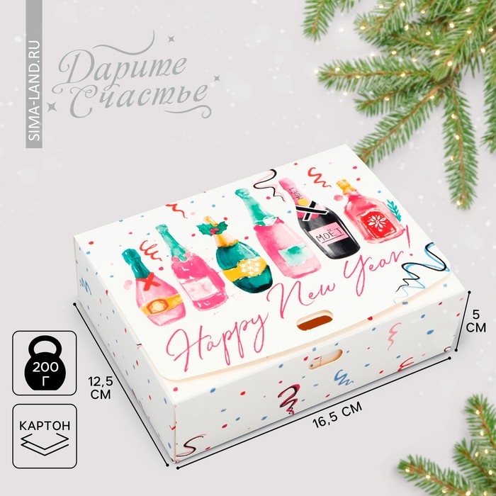 Коробка подарочная новогодняя складная «Шампанское», 16.5 х 12.5 х 5 см, БЕЗ ЛЕНТЫ, Новый год