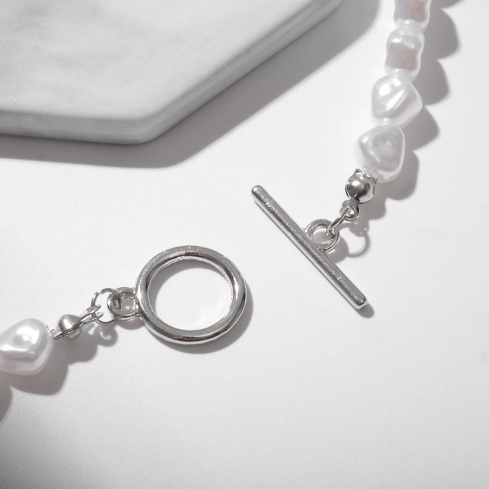 Бусы «Жгут» жемчуг, шар № 2,6,8, цвет белый в серебре, L=45 см
