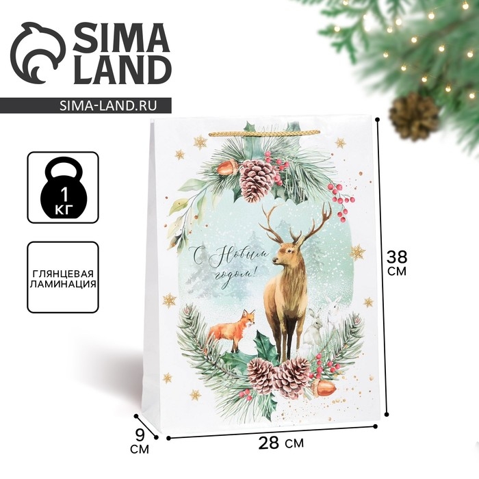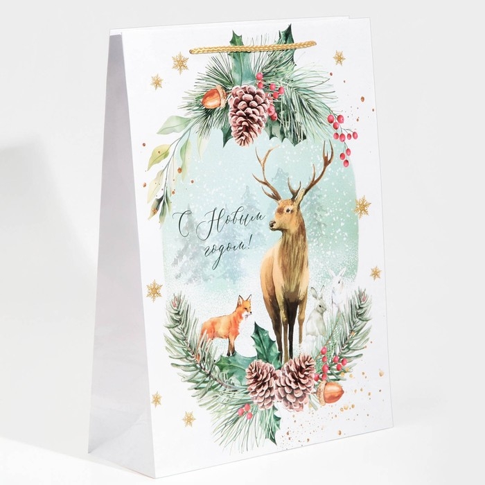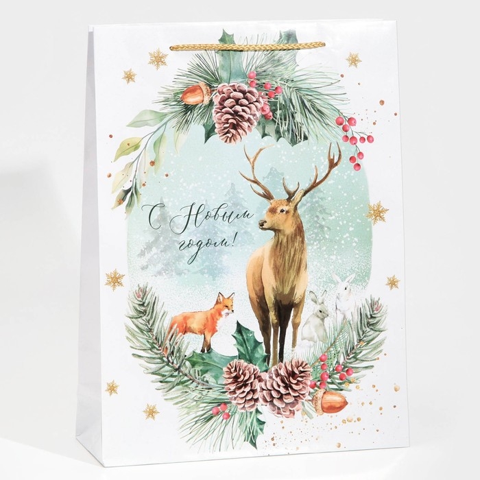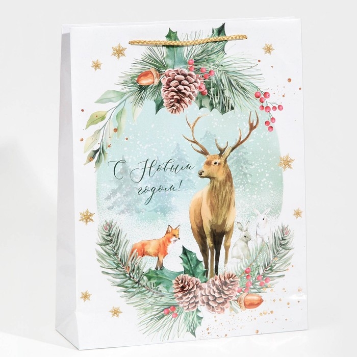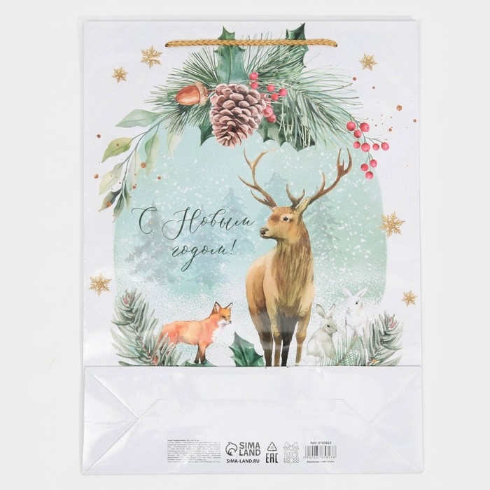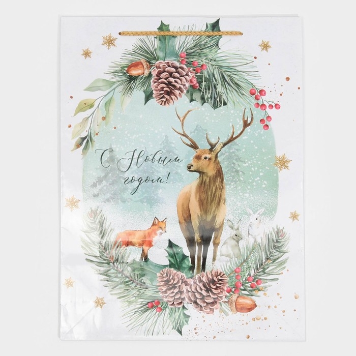 Пакет подарочный новогодний ламинированный «На лесной опушке», L 28 х 38 х 9 см