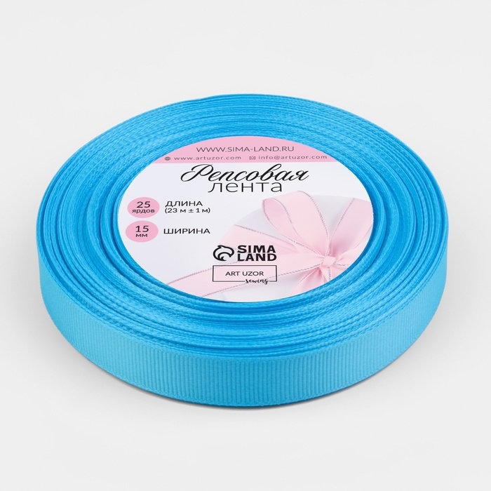 Лента репсовая, 15 мм, 23 ± 1 м, цвет голубой №20