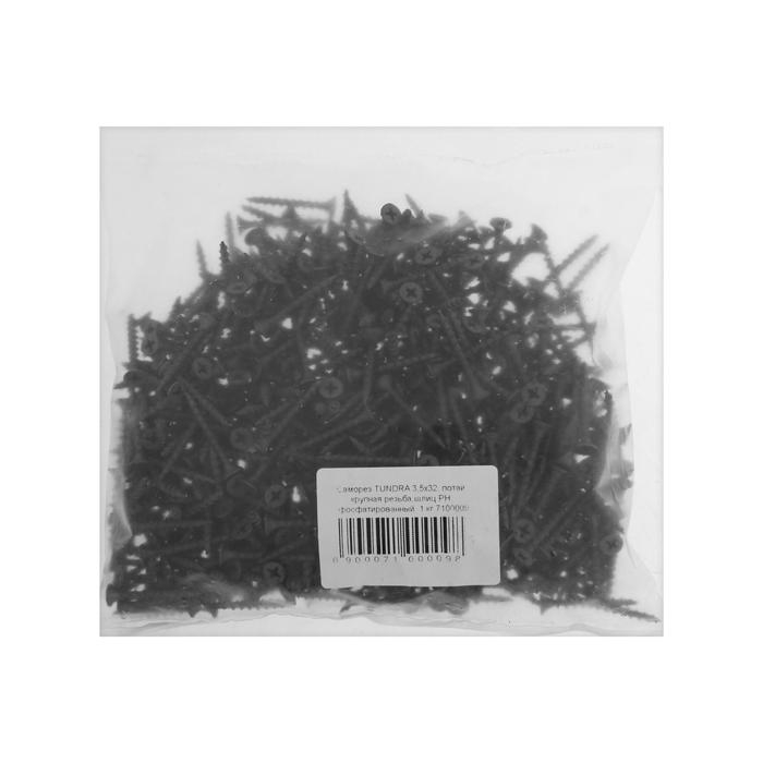 Саморез 3.5х32 мм ТУНДРА PREMIUM, потай, крупная резьба, шлиц PH, фосфатированный, 1 кг
