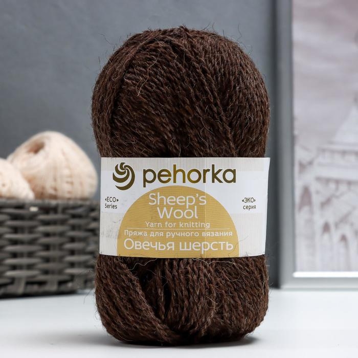 Пряжа "Овечья шерсть" 100% шерсть 200м/100гр (251-Коричневый)
