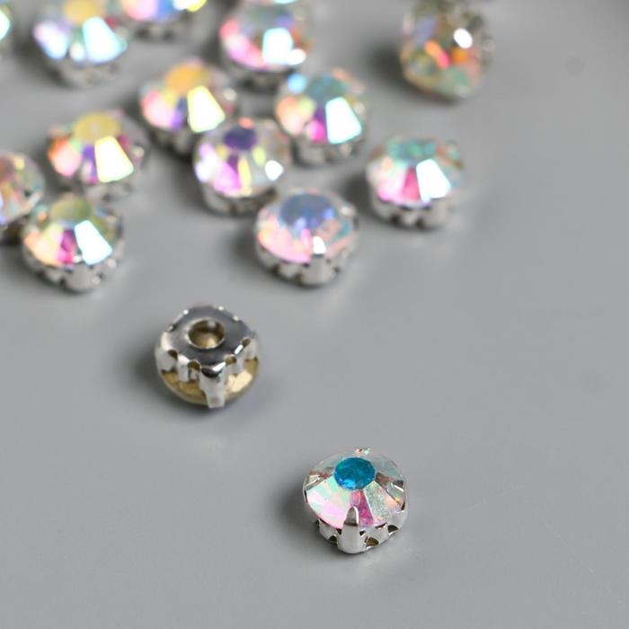 Хрустальные стразы в цапах/серебро "Астра" 8мм, 20шт/упак, прозрачный