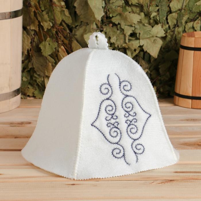 Шапка для бани с вышивкой "Узоры Азии" темно-синий узор