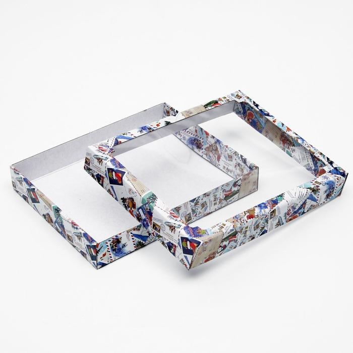 Коробка сборная крышка-дно с окном, "Новогодняя почта", 26 х 21 х 4 см. Новый год