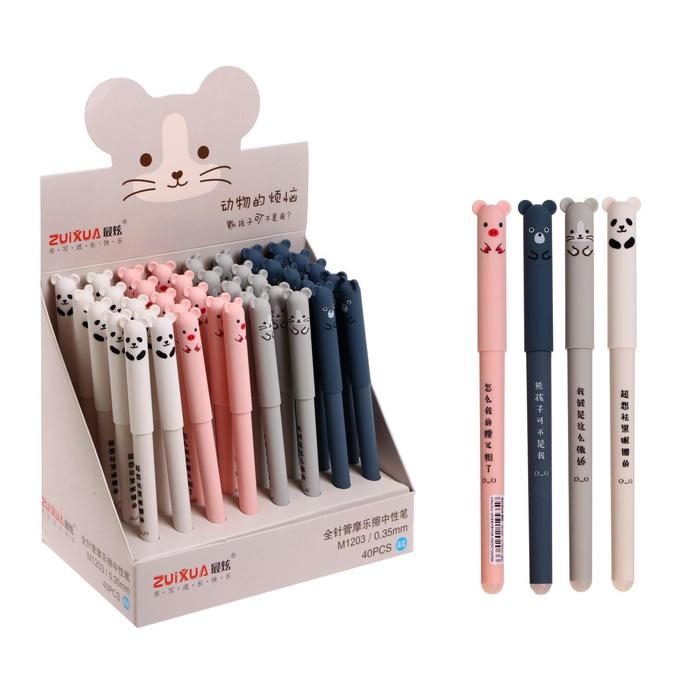 Ручка гелевая 0.5 мм, со стираемыми чернилами, синяя, штрихкод на штуке, МИКС Котики
