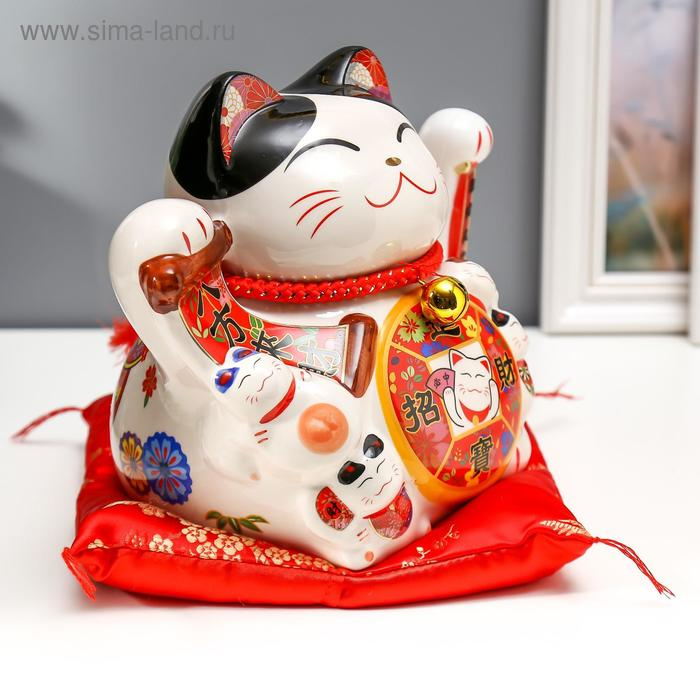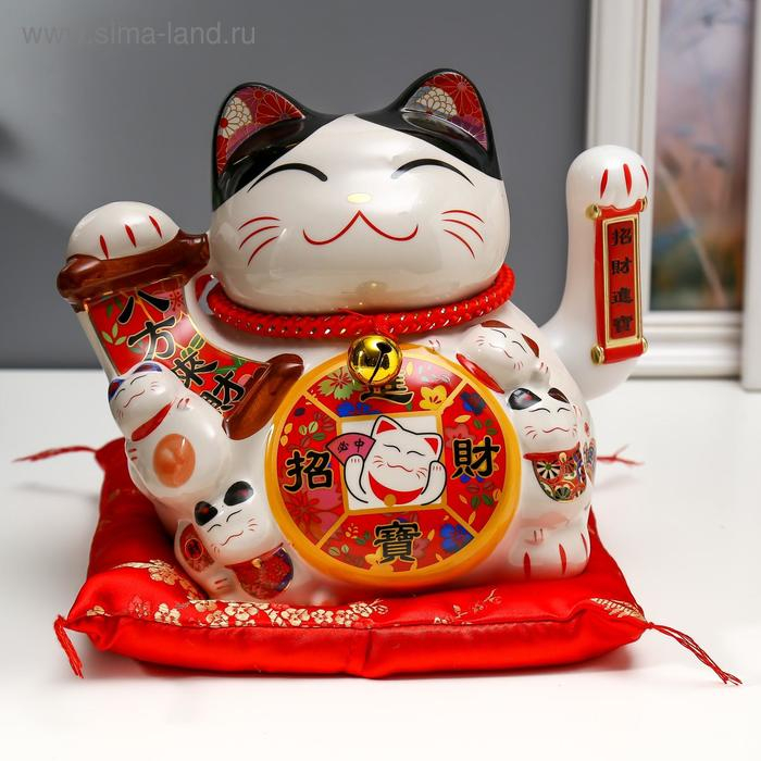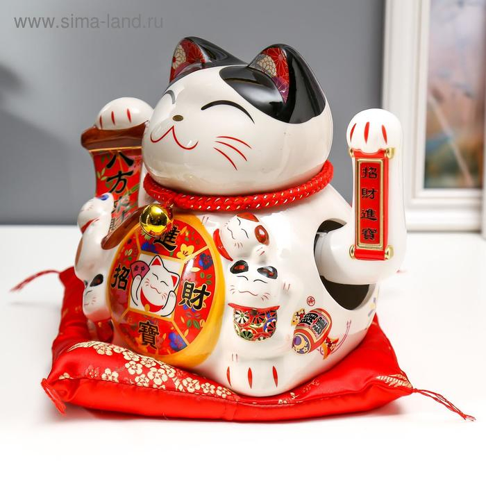 Сувенир керамика маятник "Кот Манэки-нэко со свитком" 19,5х20х14,5 см