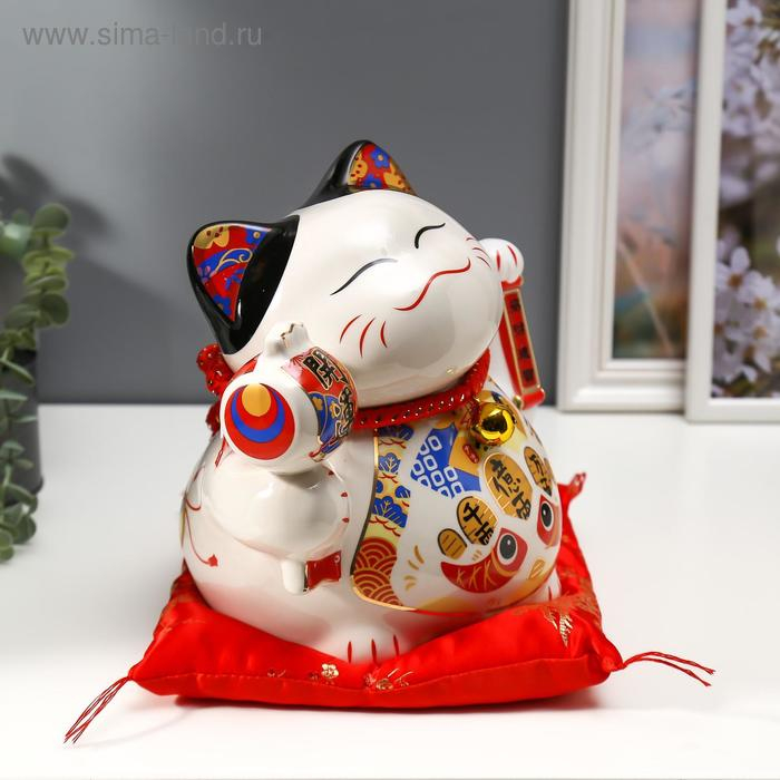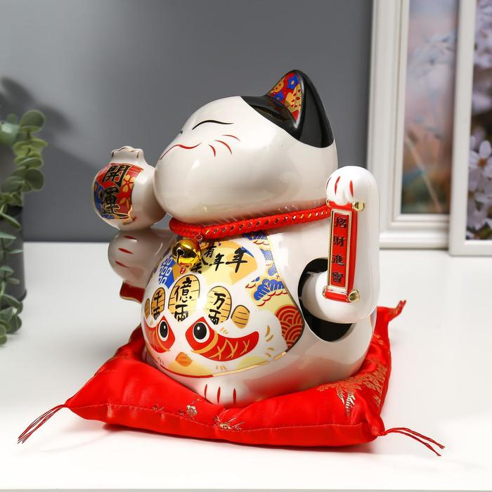 Сувенир керамика маятник "Кот Манэки-нэко с молоточком и свитком" 19,5х20х14,5 см