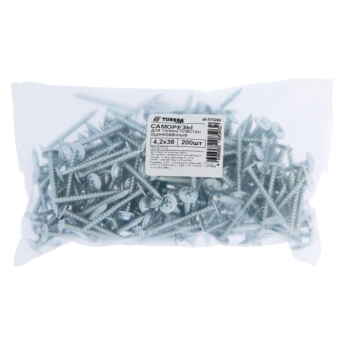 Саморезы "ТУНДРА krep", с прессшайбой, остроконечные, 4.2x38 мм, оцинкованные, 200 шт