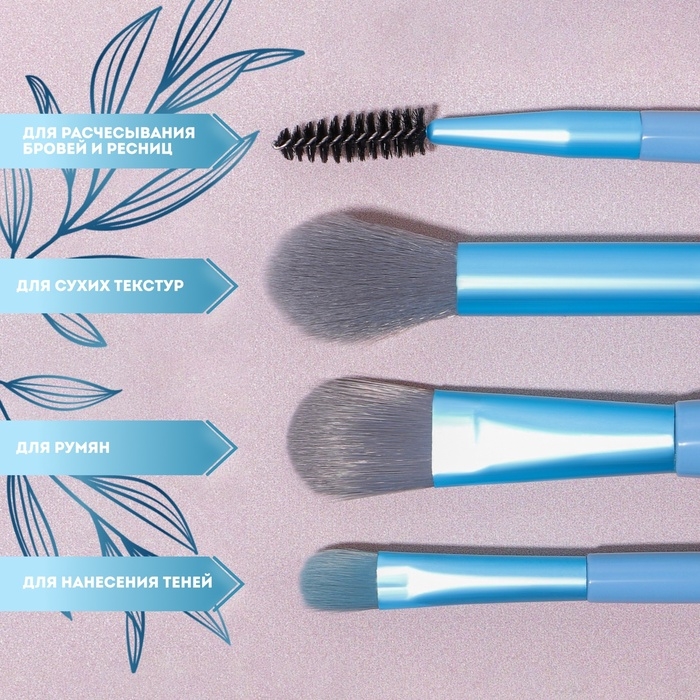 Набор кистей для макияжа «Pastel», 8 предметов, PVC-чехол, цвет голубой