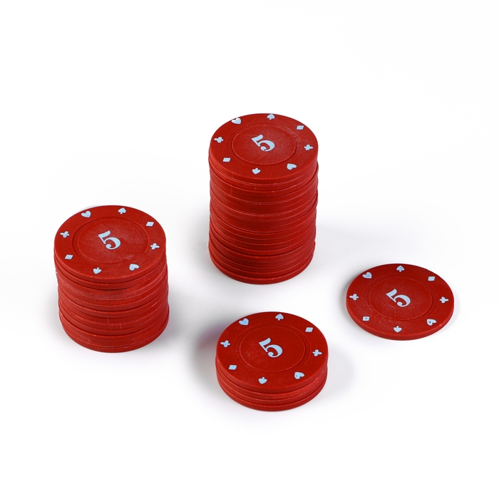 Набор фишек с номиналом 5. однотонные, красные, в наборе 25 шт.
