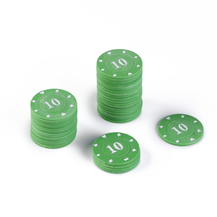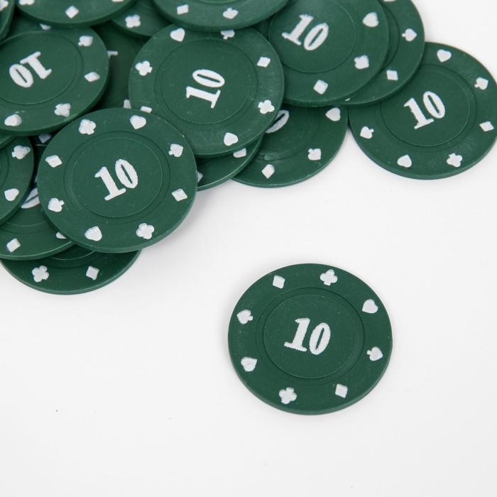 Набор фишек с номиналом 10, однотонные, зеленые, в наборе 25 шт.