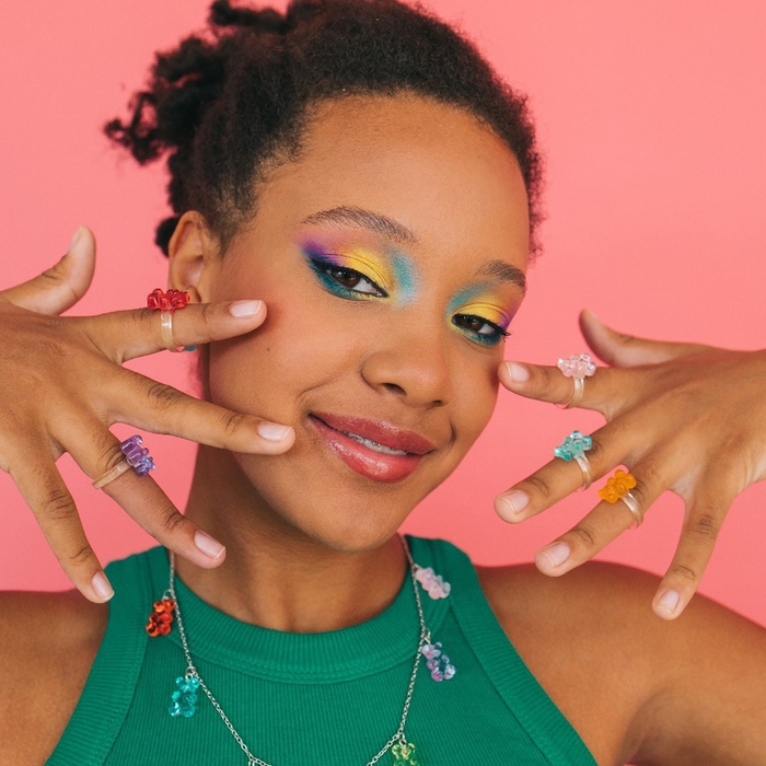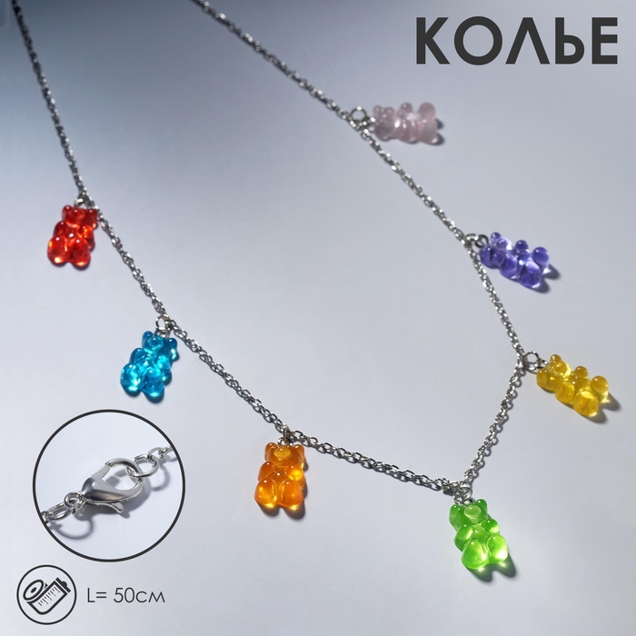 Колье «Мармеладный мишка» компания, цветное в серебре, 50 см