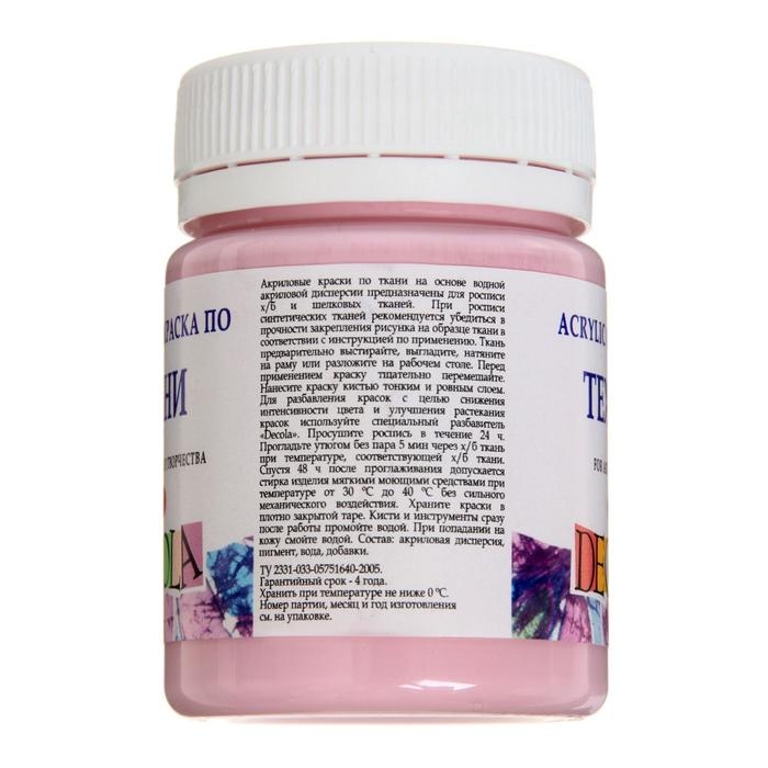Краска по ткани, банка 50 мл, ЗХК Decola, сакура, 4128370, (акриловая на водной основе)