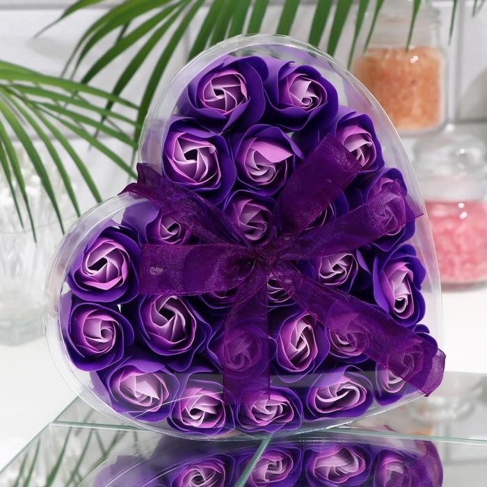 Мыльные розочки, фиолетово-белые, набор 24 шт.