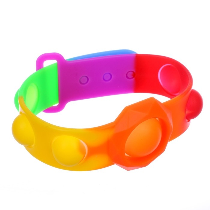 Развивающая игрушка «Браслет» POP IT — это стильный и яркий аксессуар, который поможет вам дополнить образ. Благодаря мягким пузырькам на нём его можно использовать, как средство для снижения стресса и напряжения, просто кликайте пузырьки, когда вам нужно расслабиться.