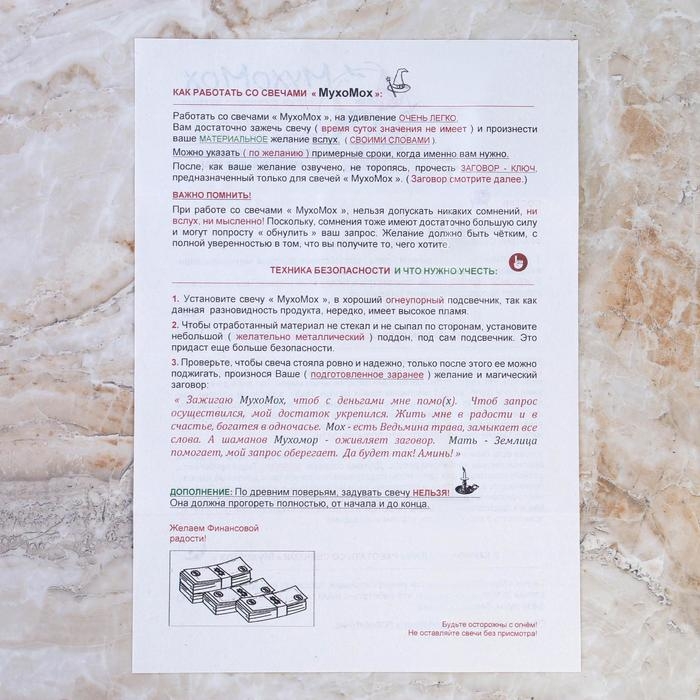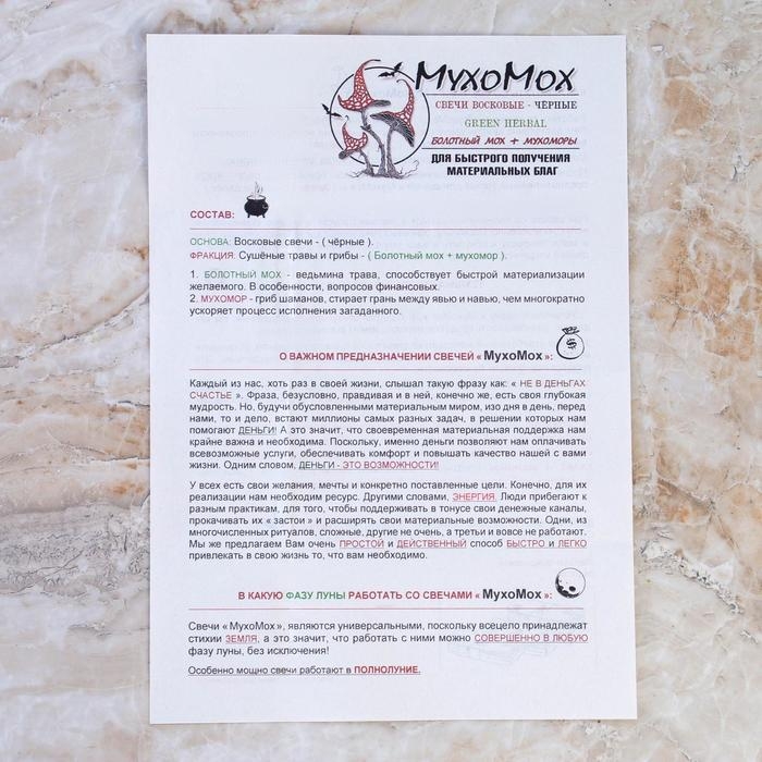 Свеча магическая медовая с мухоморами для привлечения материальных благ «МухоМох», 12 штук