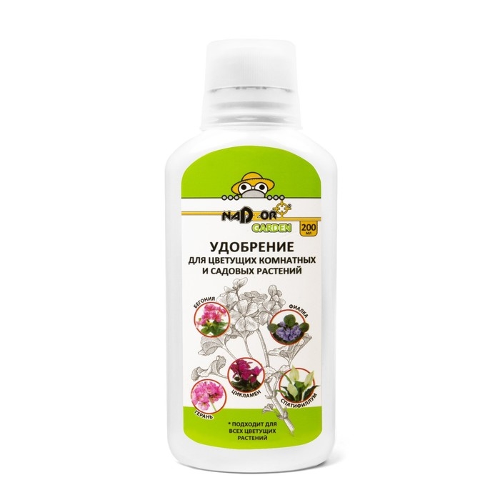Жидкое удобрение "Nadzor Garden", для цветущих комнатных и садовых растений, 200 мл