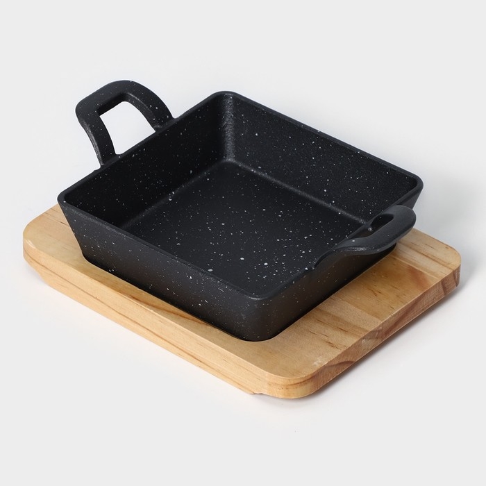 Сковорода чугунная «Ночь», 18,5×12,5×5,2 см, на деревянной подставке