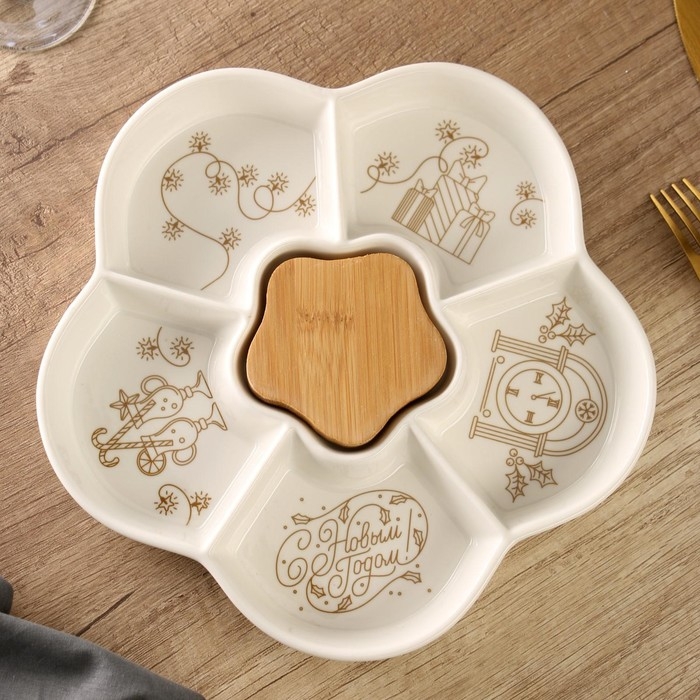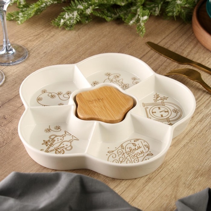 Менажница керамическая новогодняя «С Новым годом», 24 см, белая