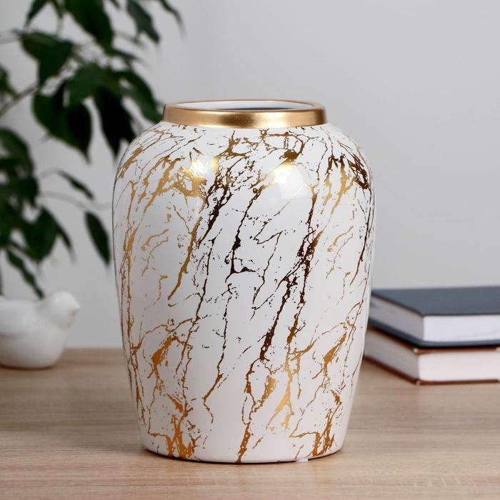 Ваза керамика настольная "Гелла" d-9,5 см 15х20 см, белый
