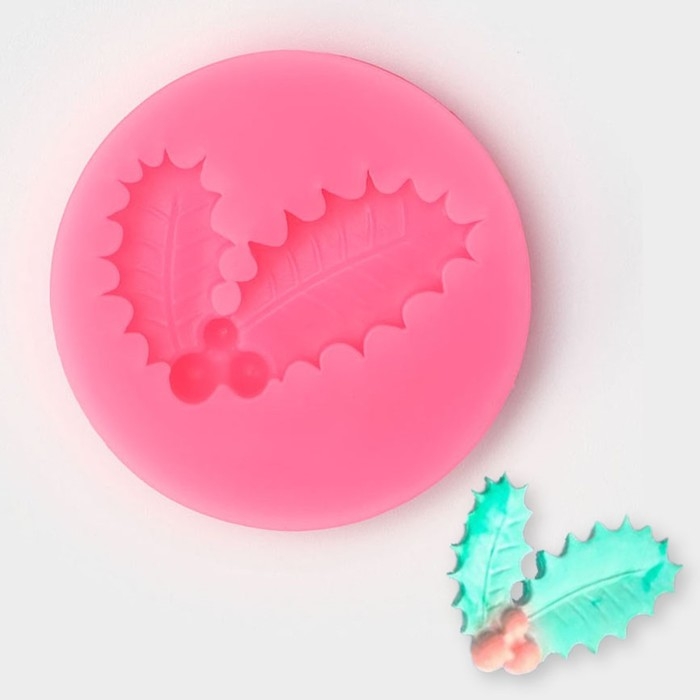 Молд «Листья с ягодами», силикон, 5,3×5,3×1 см, цвет МИКС