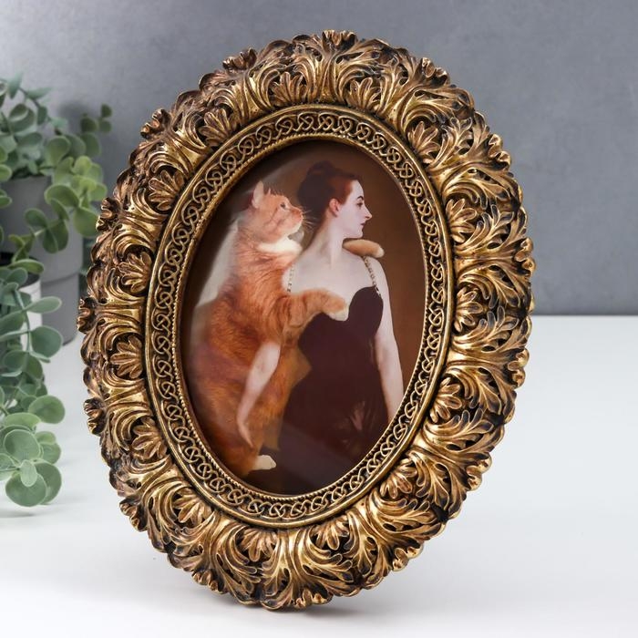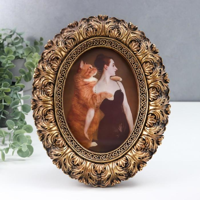 Фоторамка полистоун 10х15 см овальная "Листья пышные" состаренное золото 26х20 см