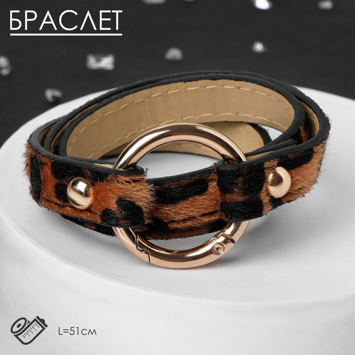 Браслет кожа «Сафари» леопард, цвет чёрно-коричневый, 51 см