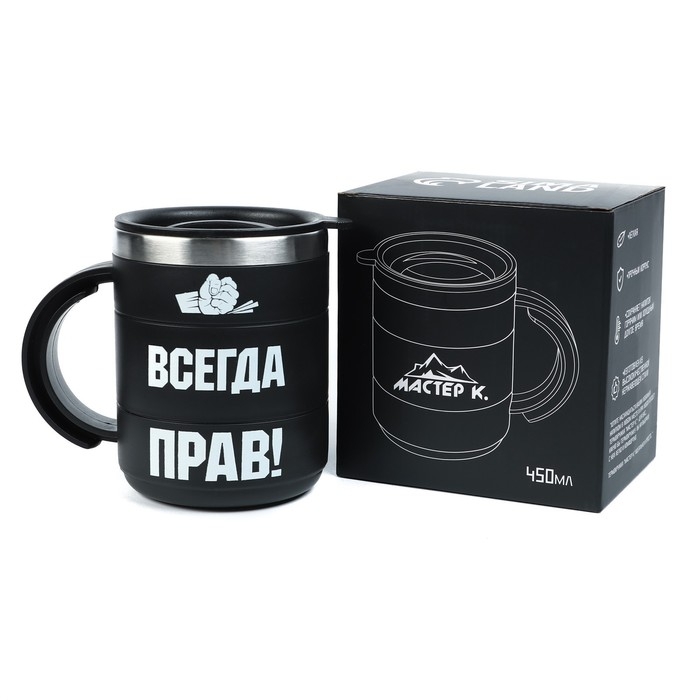 Термокружка "Мастер К" Поход "Прав", 450 мл, с ручкой, сохраняет тепло 2 ч, 12.5 х 10.5 см