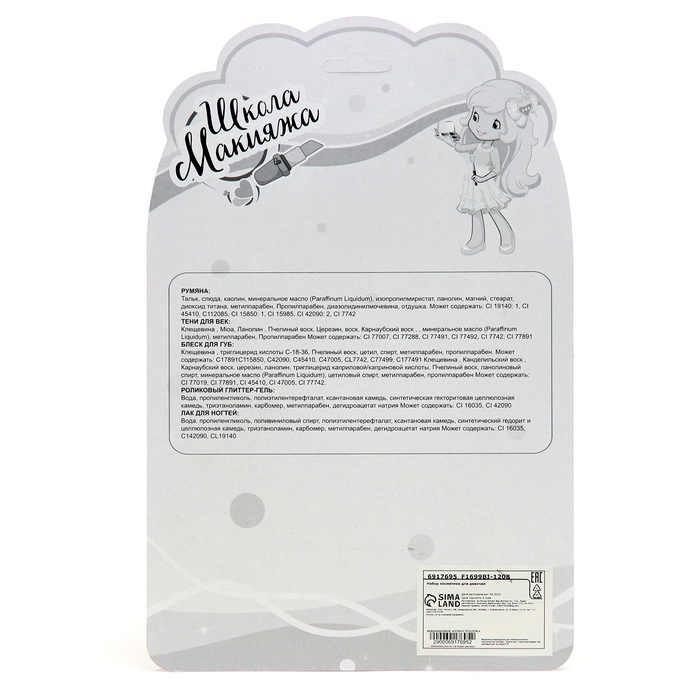 Детская косметика позволит ребёнку устраивать эксперименты со своим стилем. Набор поможет девочке подобрать оптимальные варианты для вечерних и дневных образов. Косметика без труда смывается водой или с помощью ватного диска и безопасна для детской кожи.