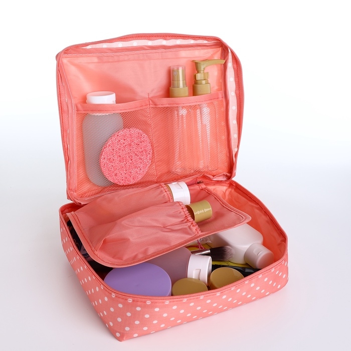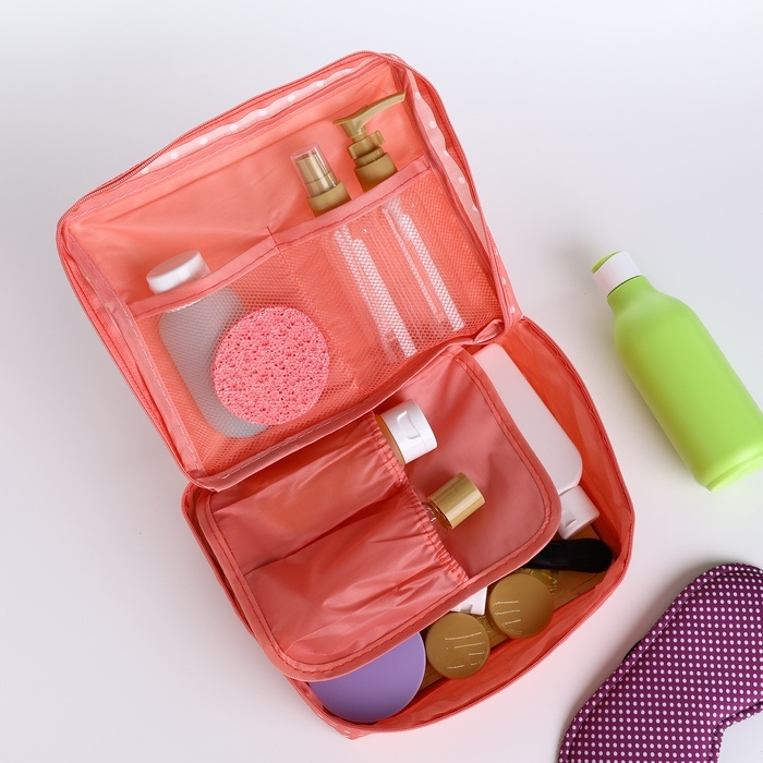 Косметичка дорожная, 2 отдела на молнии, цвет розовый