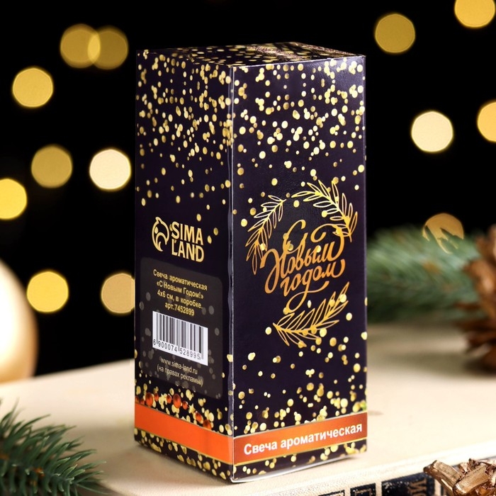 Свеча ароматическая новогодняя "Счастливого Нового года", 4×6 см, пряное яблоко, в коробке