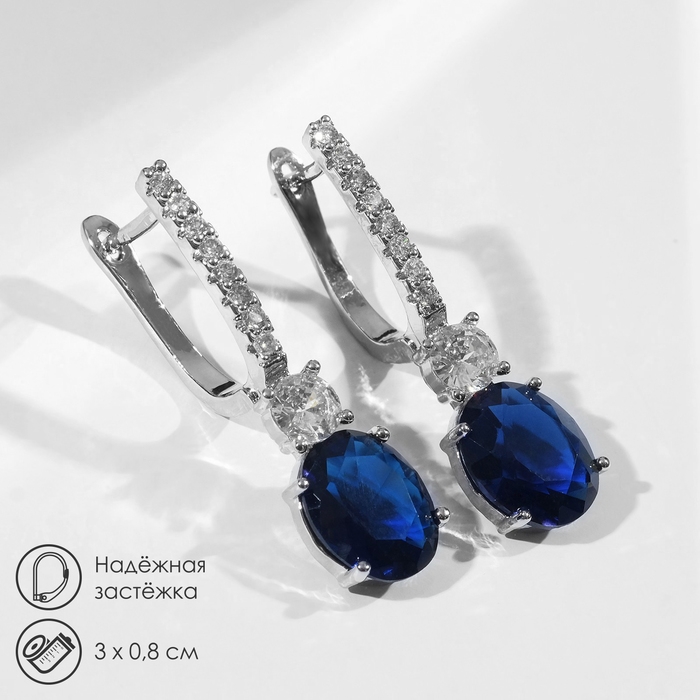 Серьги со стразами «Блиц», цвет бело-синий в серебре