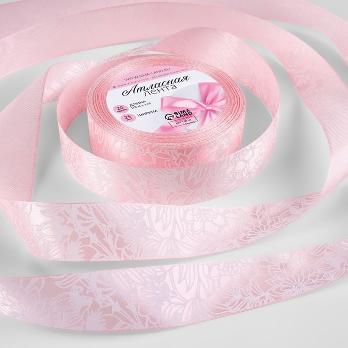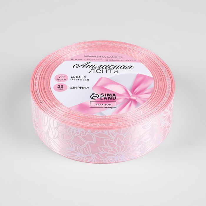 Лента атласная «Цветы», 25 мм × 18 ± 1 м, цвет розовый