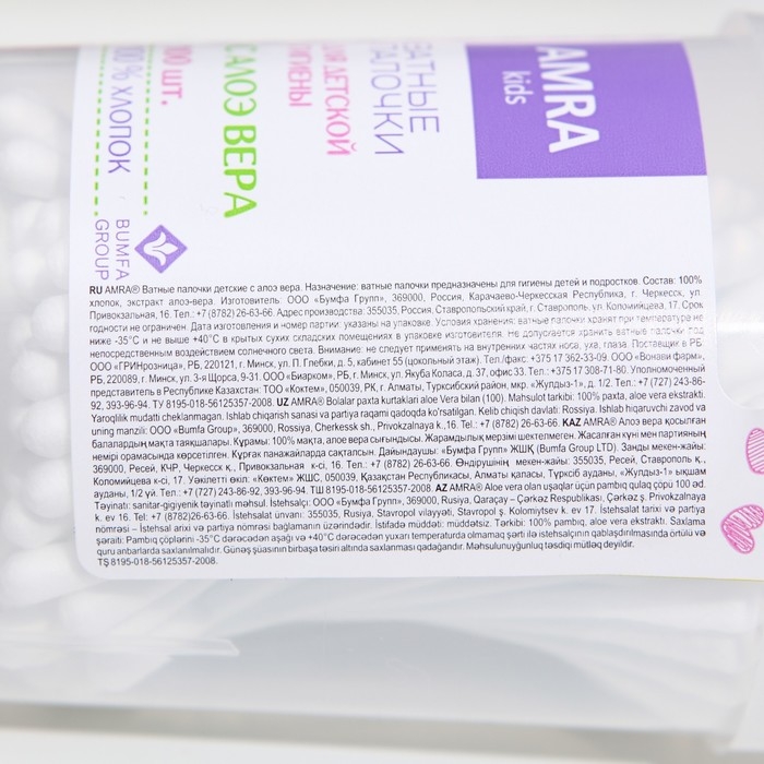Приобретая ватные палочки Amra с алоэ вера, вы получаете надёжное и качественное средство для детской гигиены, которое станет незаменимым помощником в уходе за вашим малышом.