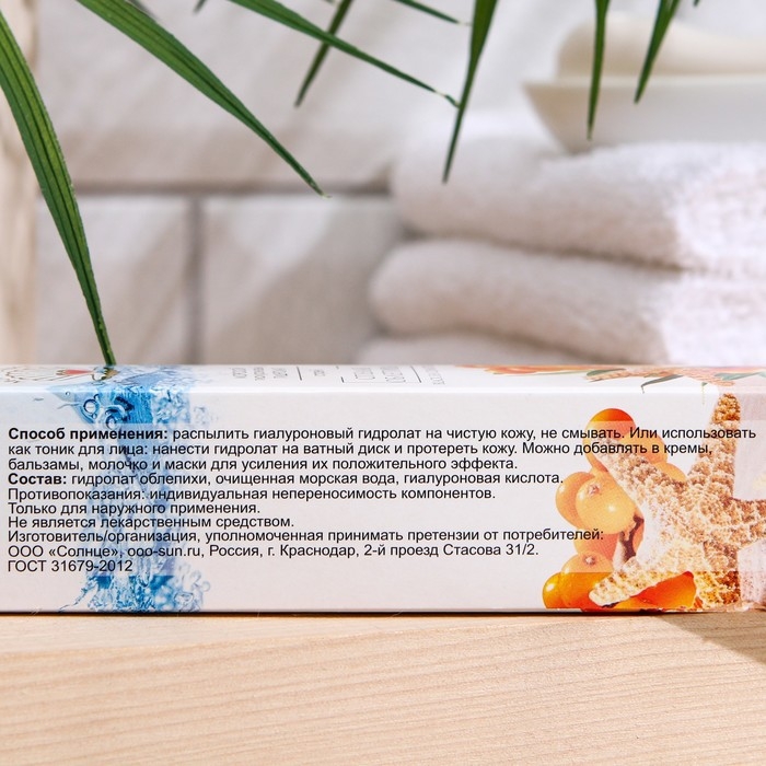 Состав: гидролат облепихи, гиалуроновая кислота HA-TLM 200-400KDa, очищенная морская вода.