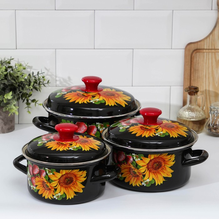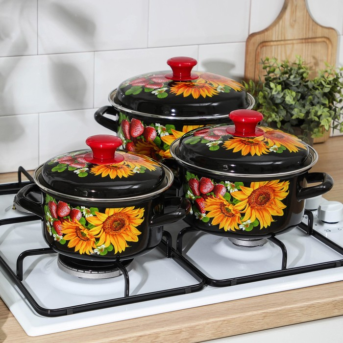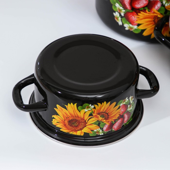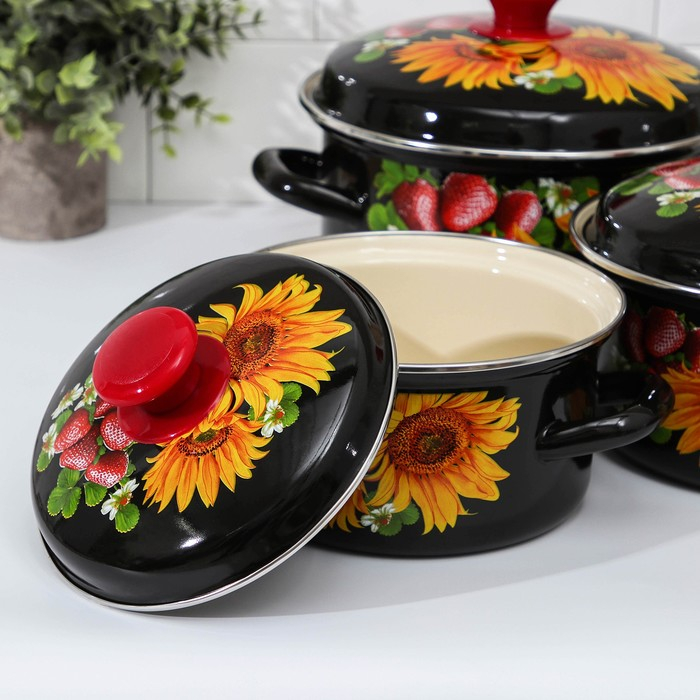 Набор эмалированных кастрюль «Клубника садовая», 3 предмета: 1,5 л, 2,9 л, 4,5 л